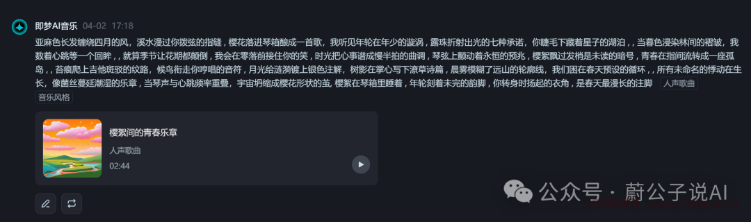可以看到,DeepSeek考虑的很周全,最终给出了我们一版歌词~