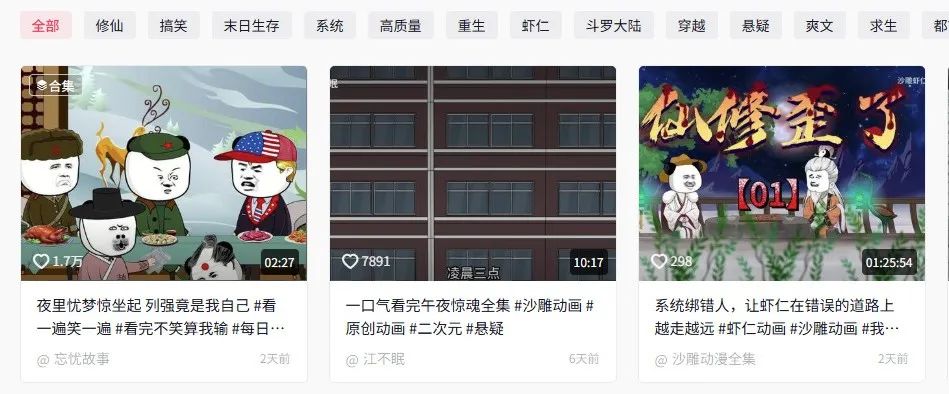 很多喜欢刷段视频的人,应该或多或少在各个平台上看到过类似下图的视频吧,他不仅搞笑而且紧跟时事热点,这类AI动画又有一个别称叫做:沙雕视频。而且这类视频的播放量一般都不会低,原因嘛很简单,它符合人的需求。因此,这类动画视频也是新手或者想从事更换短视频赛道者的一个新方向。