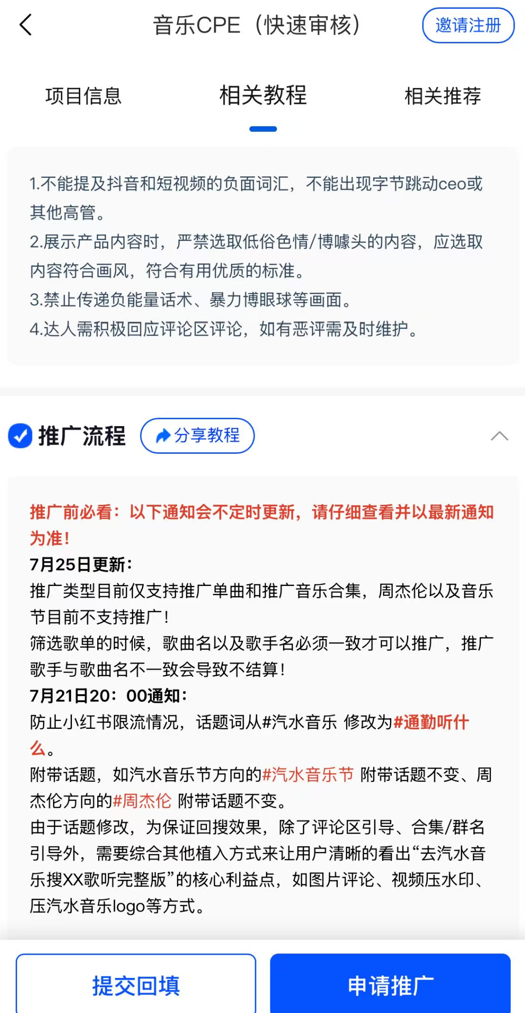 想做哪个就点进去,里面会有详细的项目信息、单价以及操作教程,直接点击“申请推广”就行。