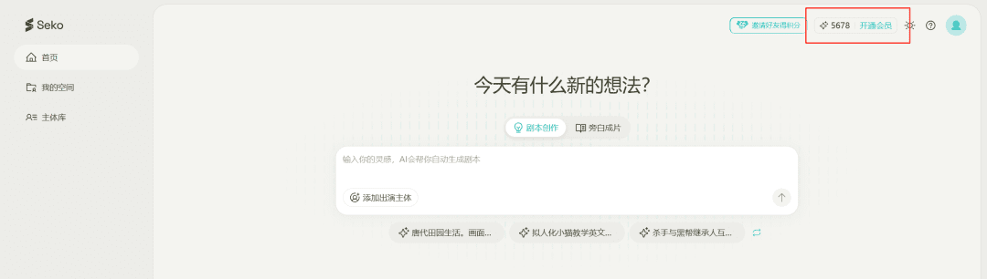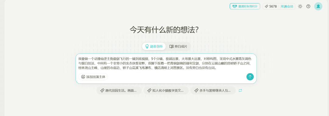 细心的朋友可能发现我最近几篇都是用它来制作,为什么选择它,而不是传统的豆包+即梦组合,因为它生成的效果的确还不错,再加上最近忙的视频俱乐部三期和coze智能体一期的海报内容,借助它来帮忙快速生成分镜画面和视频。最最重要的一点,就是我积分很多,至少可以做20个视频,所以能帮忙提高创作效率的工具,还是有必要让大家多去体验和白嫖它,也慢慢学会利用AI来提效。