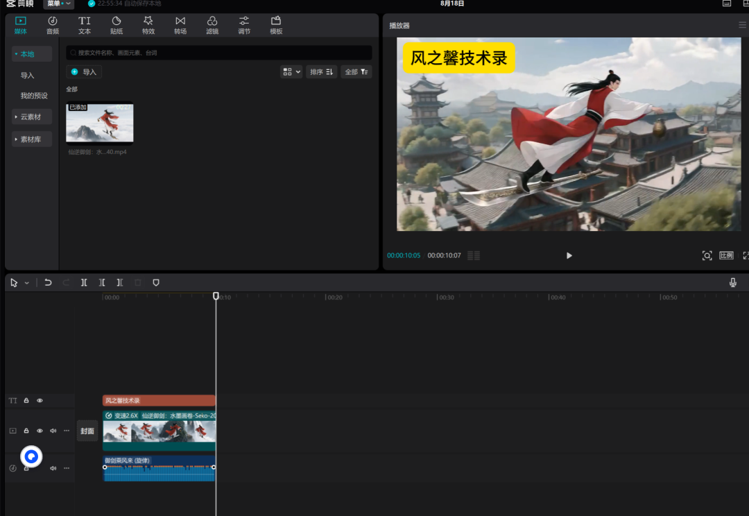 2.打开剪映平台接下来适当给视频调速,添加古风的bgm,拖入轨道对齐
