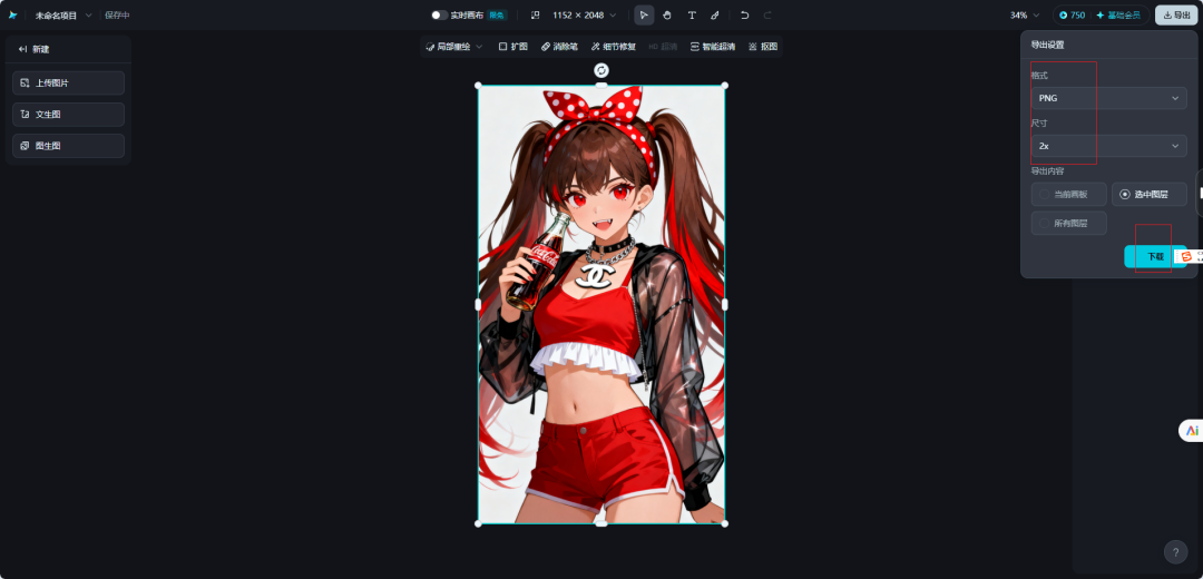 3.再点超清图里的 “去画布编辑”,就能导出无水印的图。