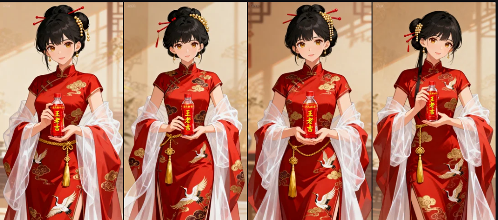 核心就是抓品类的颜色 / 特点→融到二次元形象里→搭对应的场景。