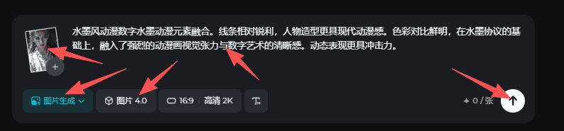 打开即梦,选择图片生成4.0模型,上传水墨画图片
