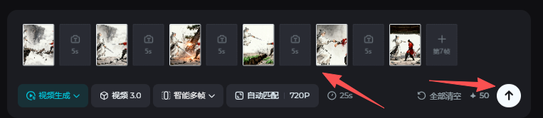 生成了两套,每套都不错 在即梦里直接选择视频生成,智能多帧模型,把6个图片全部按照首尾帧的模式全部放在对话框内,加入相应的提示词,点击生成即可。很多人对首尾针的提示词都特别头疼,给大家准备了一个万能的口令词口令词:无缝转场。节奏精准,叙事连贯。无拖影,无噪点。情感饱满,生动传神。过渡如行云流水。无跳跃无断裂。