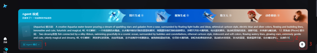 第二步,即梦生成图片网址:https://jimeng.jianying.com/1.选择“Agent模式”,输入刚才生成的提示词,补充比例9:16,点击生成。 2.Agent支持批量出图,如有不满意可继续对话调优。
