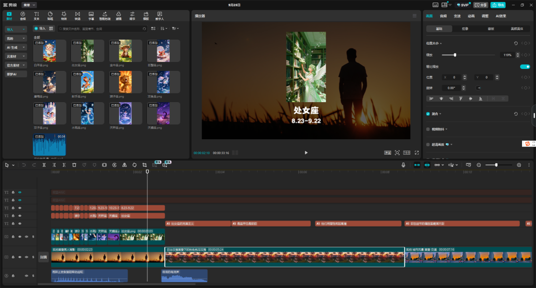 今天以星座内容为例,完整跑通了一条书单号视频的制作流程。