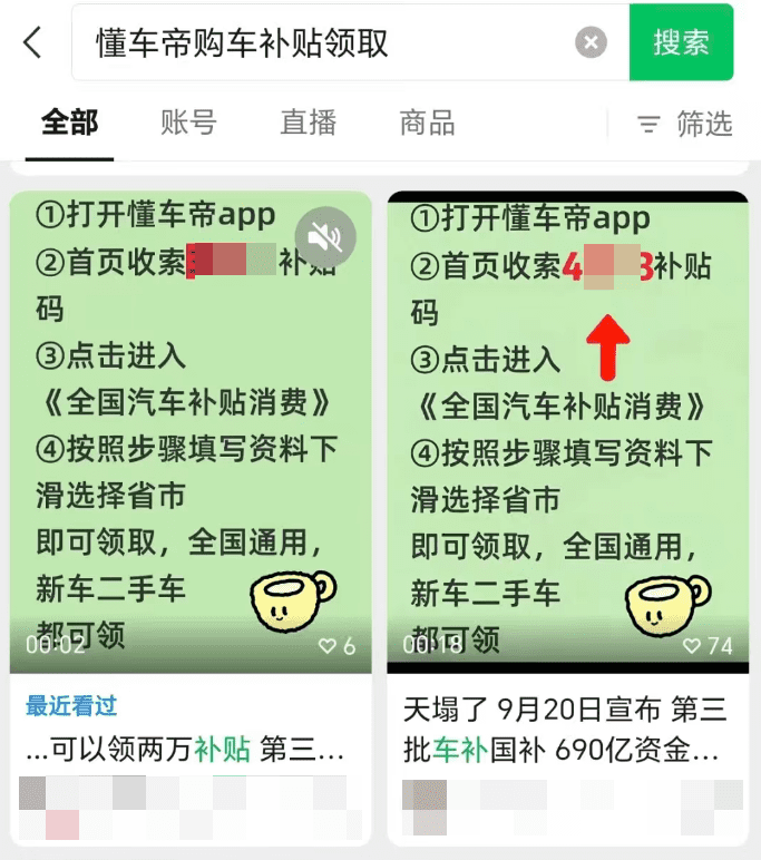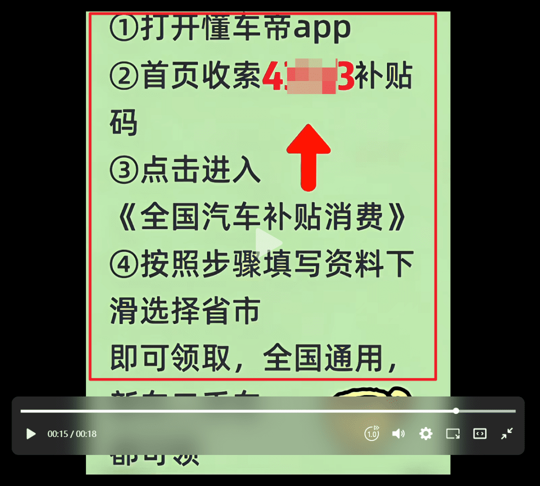 先用一张醒目的图片说”买车能领补贴”,然后第二张图教人怎么查,最后一张图放上关键词。简单,但有效!
