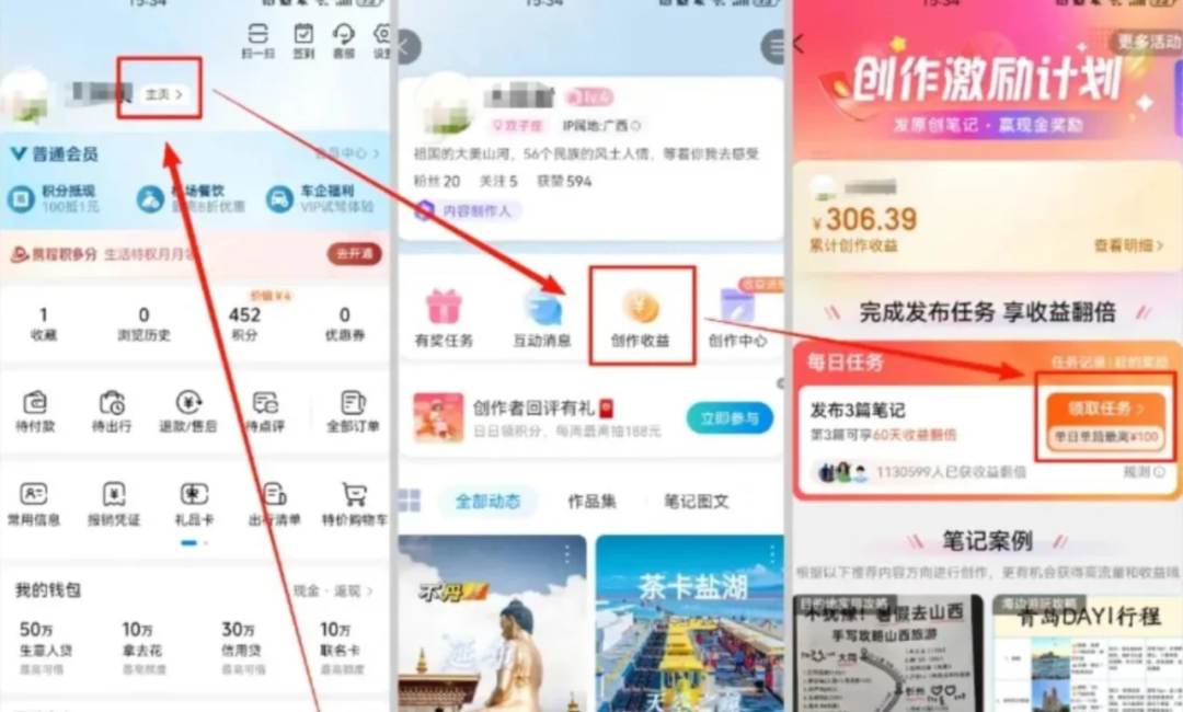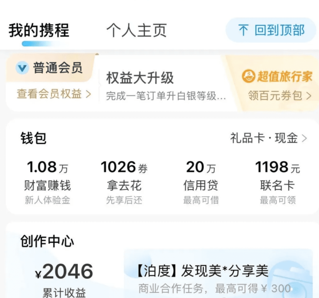 首先我们打开携程,进入我的页面–点击–主页,找到创作收益入口。