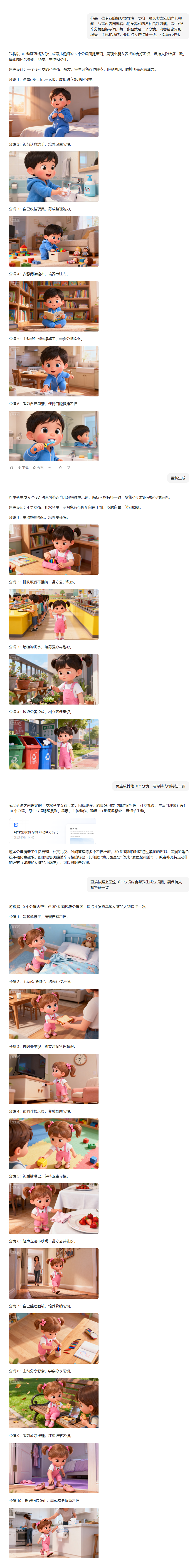 这次我要做一条关于小朋友良好习惯的育儿短片,提示词可以这样写: