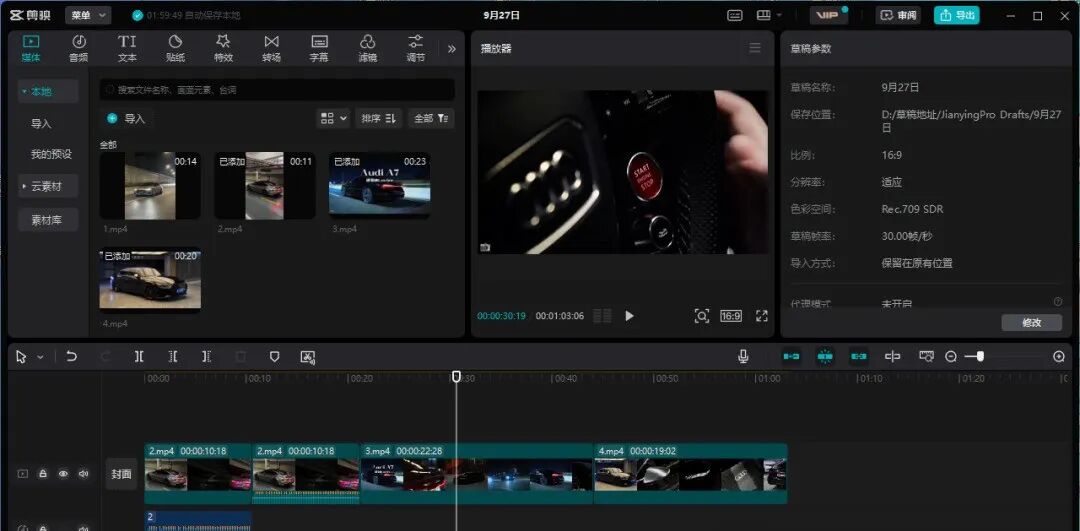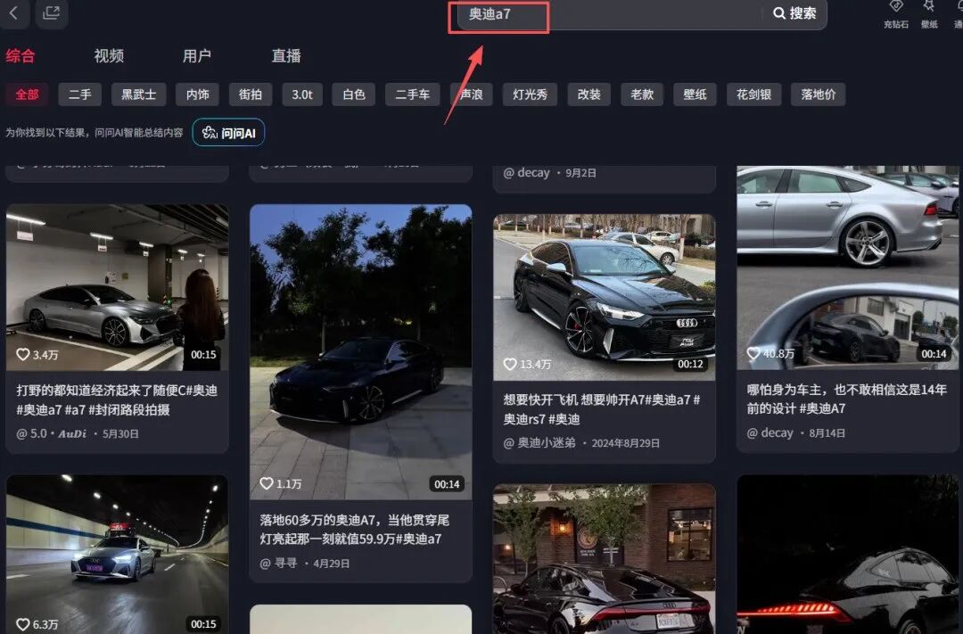 生成视频后,我们还可以在网上搜索并下载一些奥迪A7的视频素材,以便在剪辑时使用。
