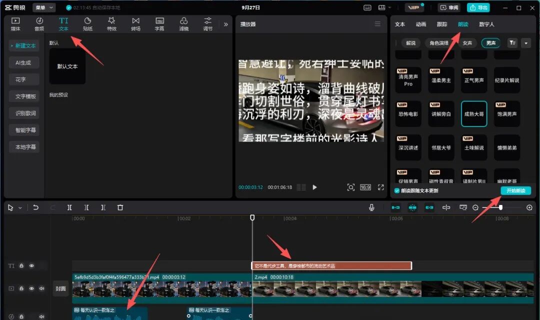 点击新增文本,粘贴文案,并点击朗读。