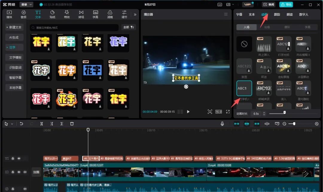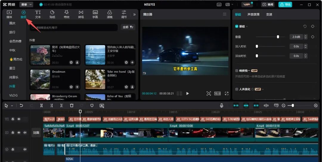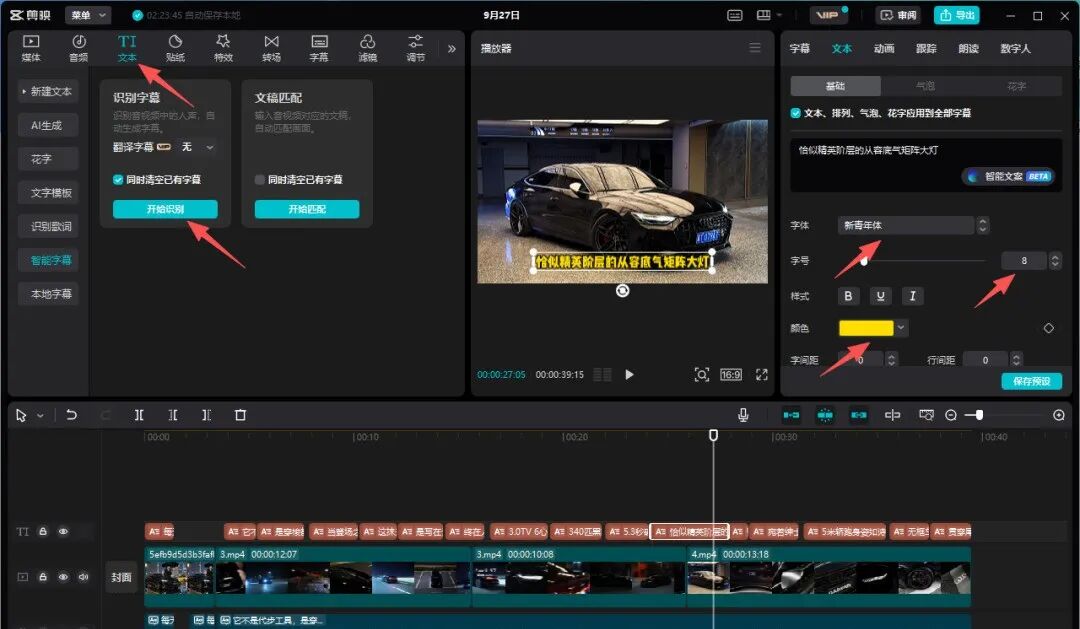 识别并调整字幕(晓晓洋使用的是破解版剪映)。