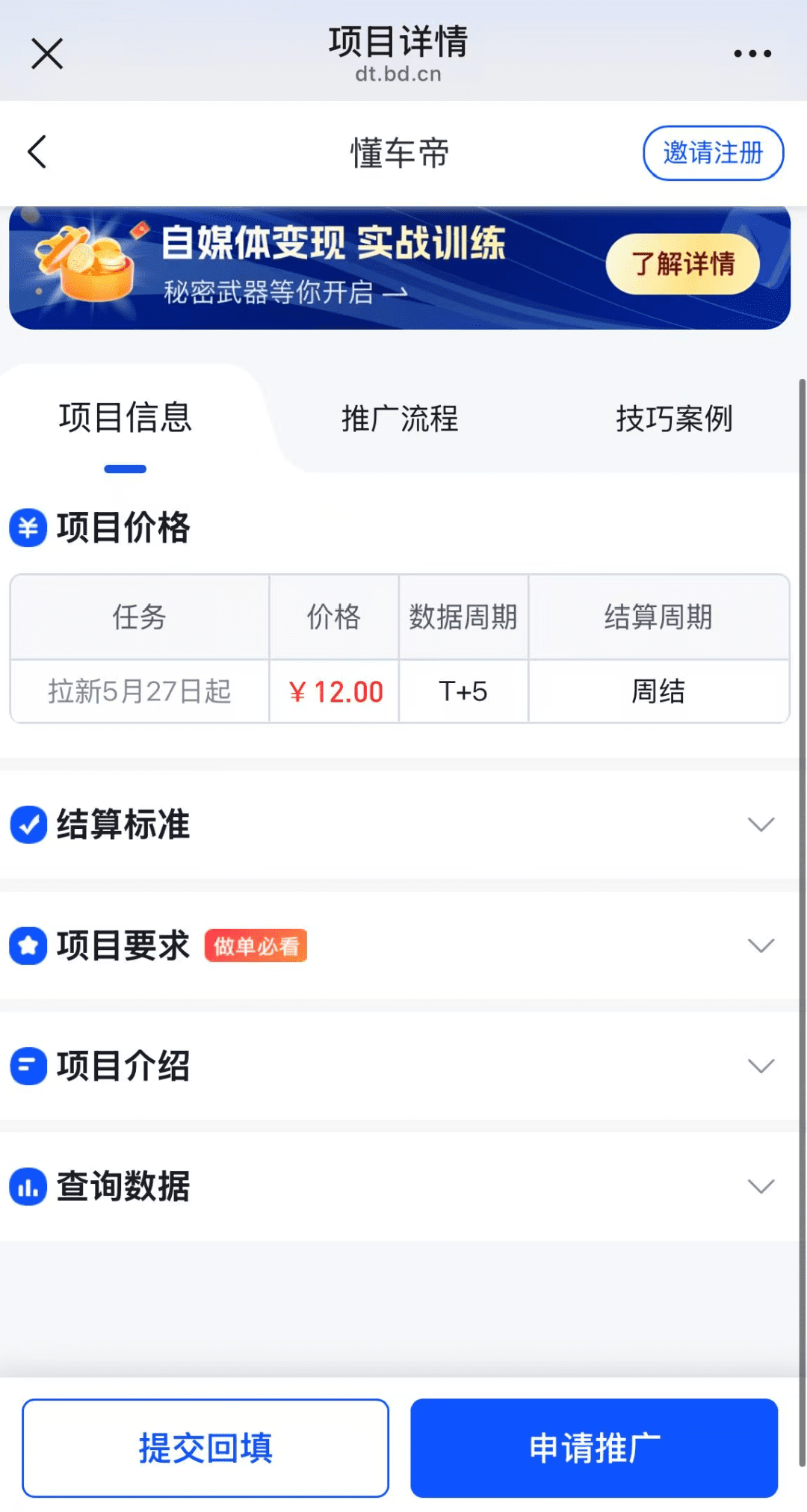 进入平台,搜索懂车帝,就可以找到推广入口,点开进入后台,可以看到注意事项和相关教程,先大概看一遍。