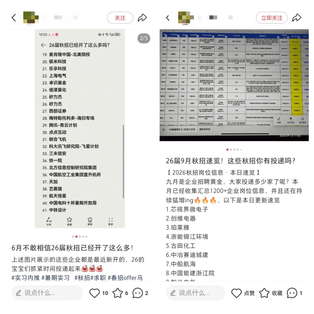 • “2024秋招已开始!整理了200+企业招聘信息”• “找了3个月工作才知道的秋招内幕”• “985学姐吐血整理,秋招避坑指南”
