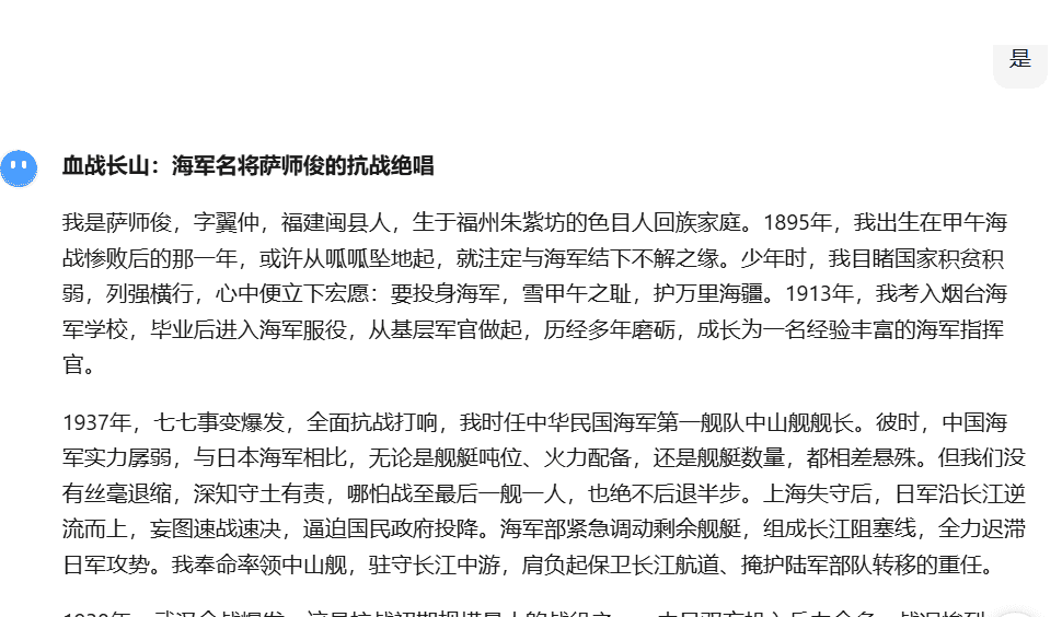 - Background: 用户希望借助一个智能体,通过随机输入来生成关于抗日名将的英勇事迹文案。这种需求可能是为了纪念历史、用于文学创作或教育目的。用户需要一个能够随机生成抗日名将,并以该人物的第一人称视角撰写2000字左右的文案,文案需包含重要事件总结和详细的事迹描述。