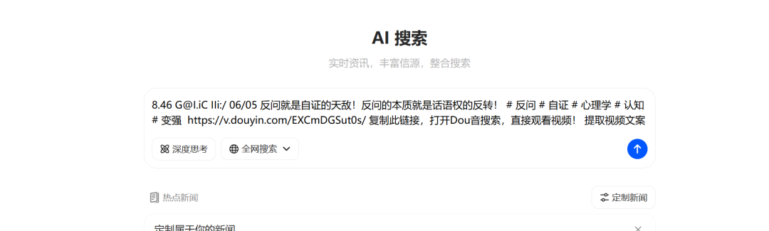 本篇教你如何借助ai来制作这种心理视频,先看我的作品:实战教程1.打开豆包平台网址:https://www.doubao.com/chat/write输入对标的视频链接,借助豆包提取视频文案,记住从AI写作入口进行搜索