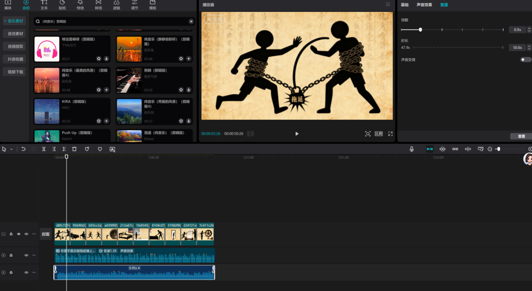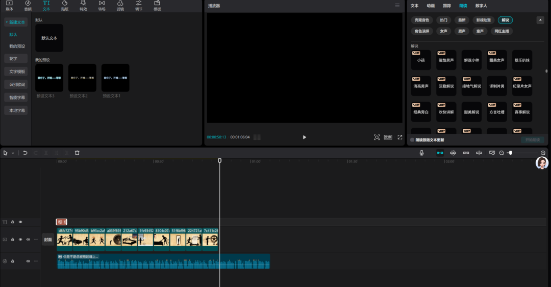 添加文本,用合适的音色生成音频,或者借助海螺语音生成,效果会更好