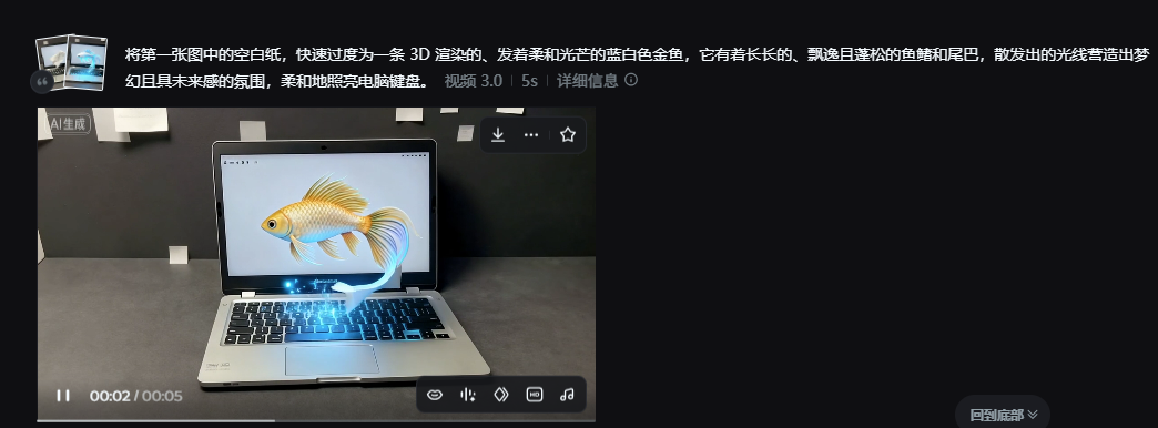 4.进阶玩法:还可以单独生成金鱼游动的视频。
