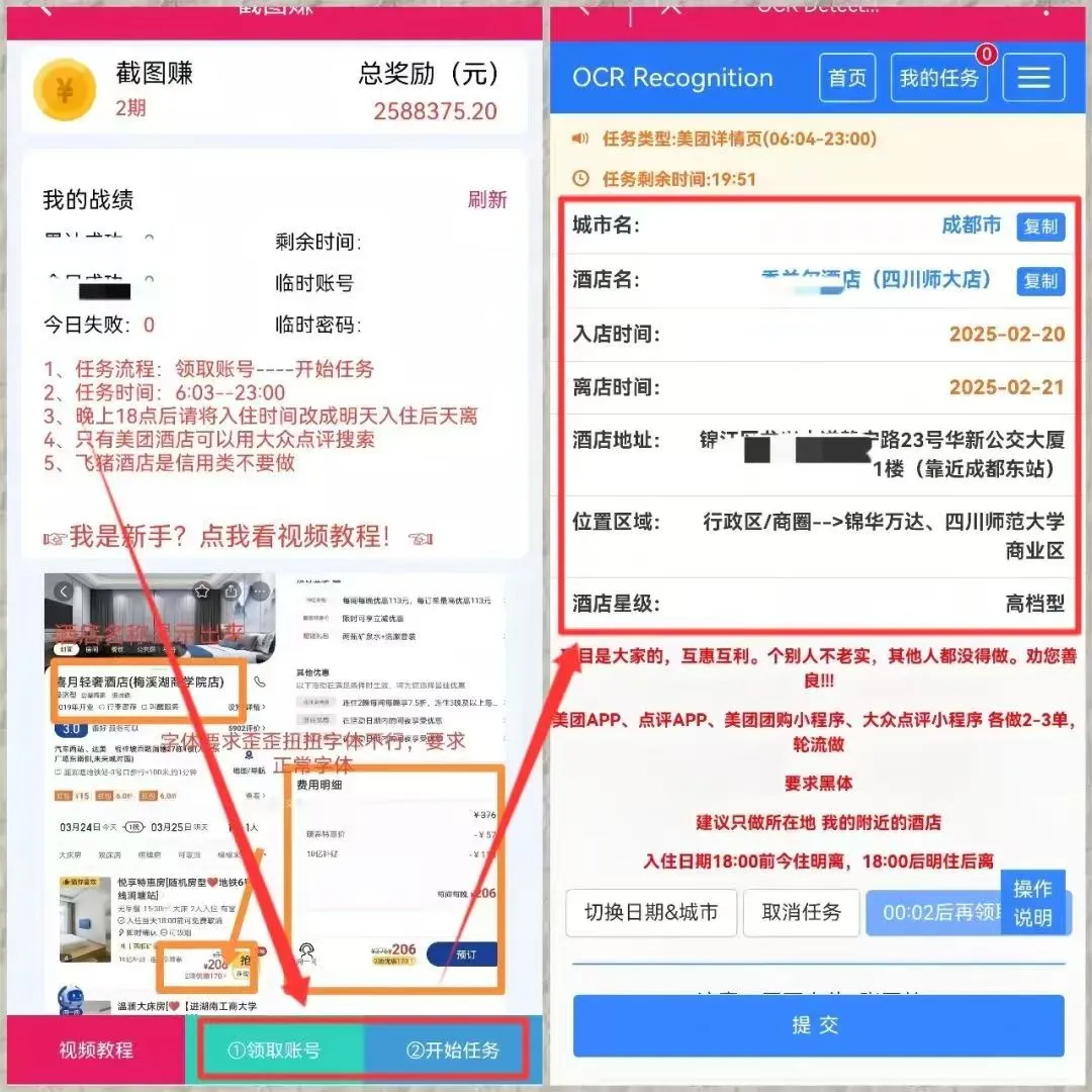 01什么手机截图项目?酒店截图项目原理就是帮酒店在平台上截图,完成任务后就可以拿到佣金。