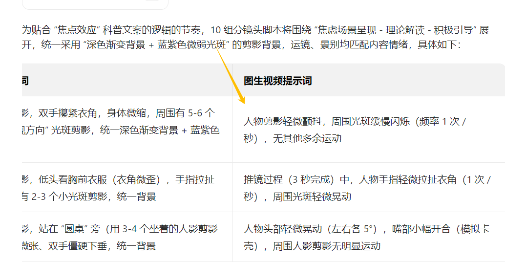 刚刚豆包生成的表格里提供了完成的图生视频提示词,