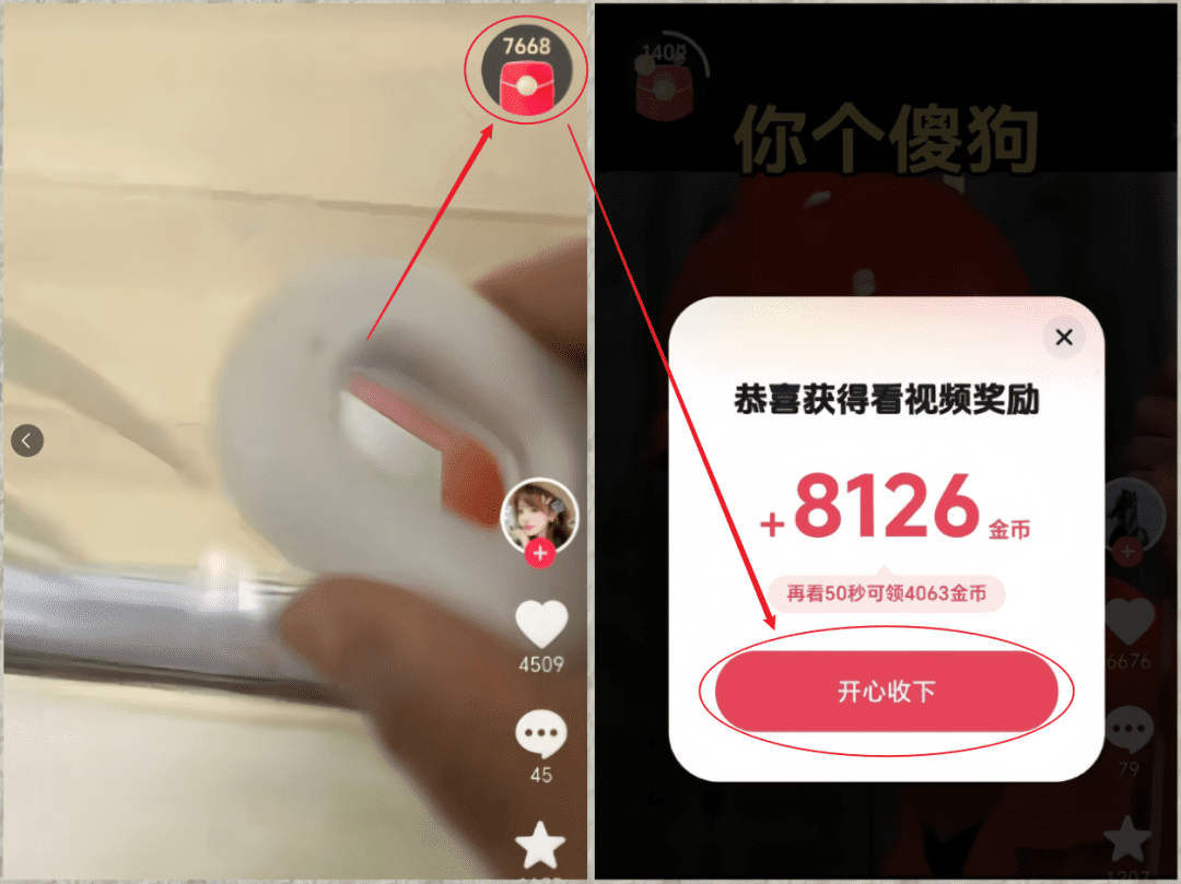 整个流程就这么简单,和你平时刷抖音没什么区别,不同的是刷抖音没有金币,而刷抖音极速版有金币。