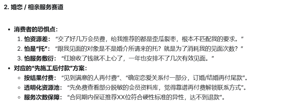 其实这个逻辑是万能的,任何一个能让用户下单的生意,一定是打消了用户心里最大的那个恐惧,我们把这个思维模型套用到其他赛道,你会发现遍地都是机会。