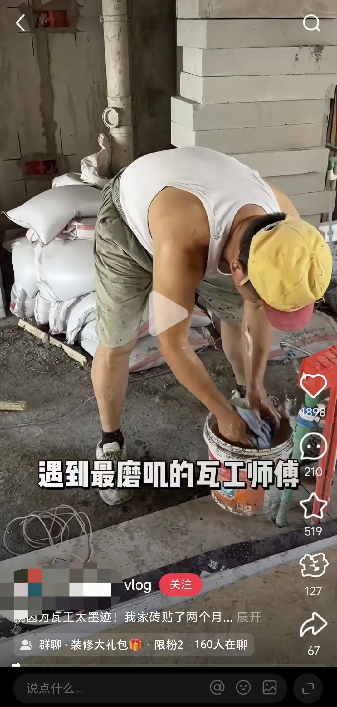 除了上面的这种技巧,我们看下面的短视频玩法,以装修业主的视角来安利一位师傅