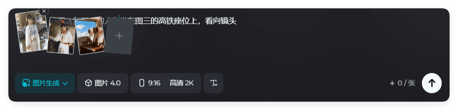 3.选择适合的高铁座椅下载,上传2张影视人物图和高铁座椅(即梦APP也支持上传多张图的) (提示词)