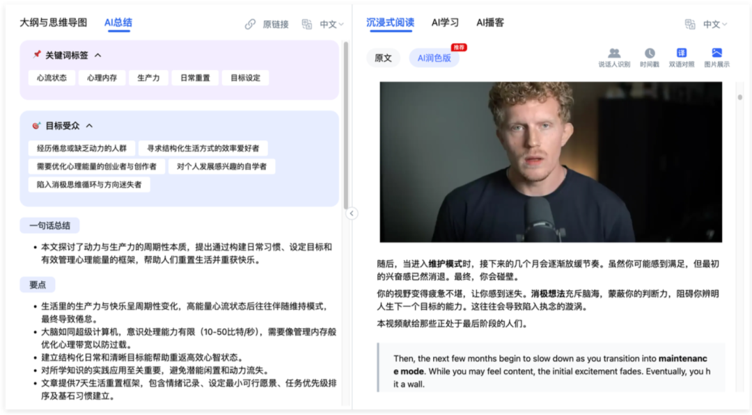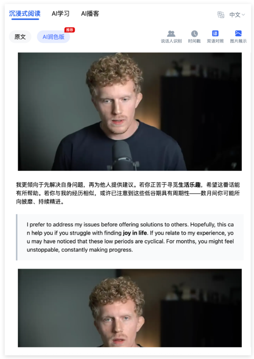 右侧:沉浸式阅读区(双语翻译的图文笔记)