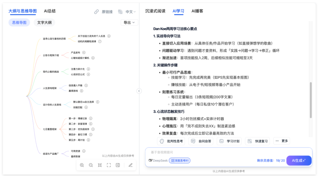操作分析:用Ai好记解析原视频内容,生成思维导图+图文笔记,直接按照比例截图发布在账号上,当天就能收获点赞和关注!