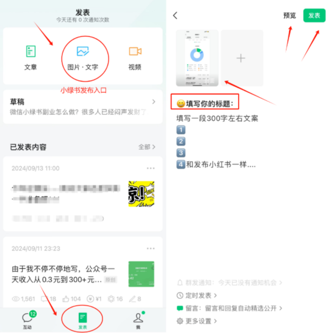 登录后选择“图片/文字”模式,上传处理好的图片、粘贴润色后的文案,检查没问题即可发布。