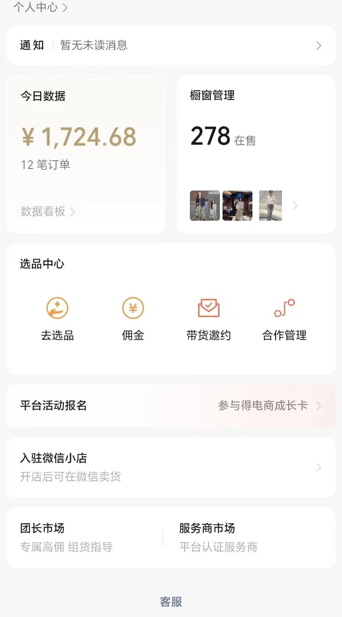 在小绿书发布的图文笔记中可以挂载商品链接(类似小红书商品笔记),当有用户点击链接并购买商品后,你就能获得相应的销售佣金分成。这块的操作也很直观,选品后获取推广链接插入内容即可。