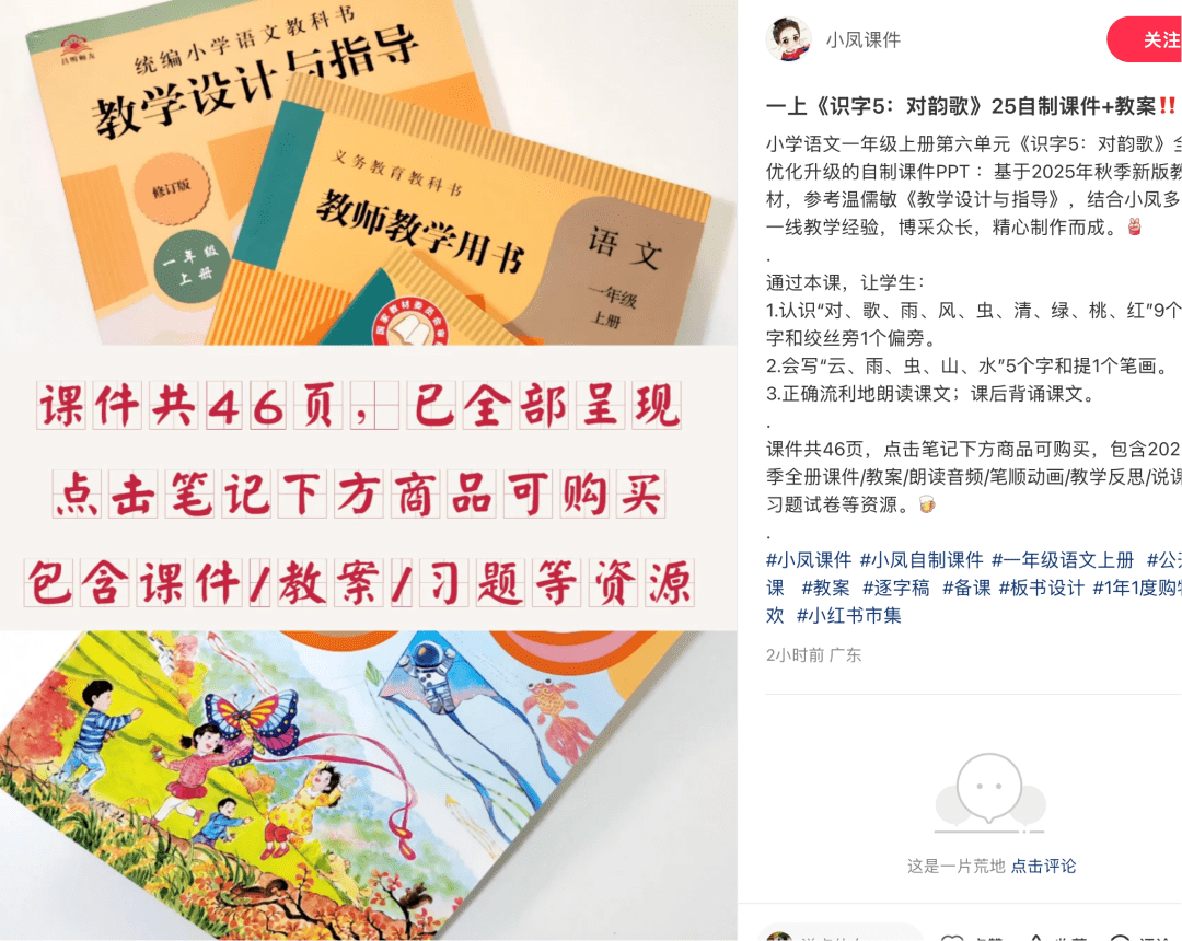 小凤的课件解决的就是这个痛点。她的课件都是最新教材同步更新的,包含完整的教学设计、朗读音频、笔顺动画,一套只要9.8元。