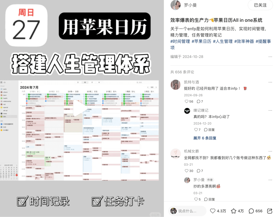 我也是她的用户,她的产品就是一套教程,教你怎么利用苹果日历系统提效。但为什么能卖59元,还卖了这么多?