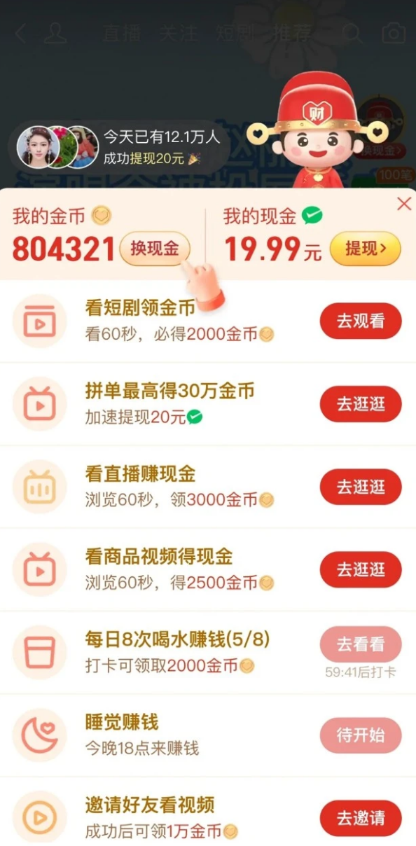 要注意的是,收益得多了之后,在看广告,就会越来越少,3.点淘淘宝旗下的直播软件。也可以薅羊毛,刚注册的时候系统会送你10元,每天都有任务可以做,赚元宝换钱。