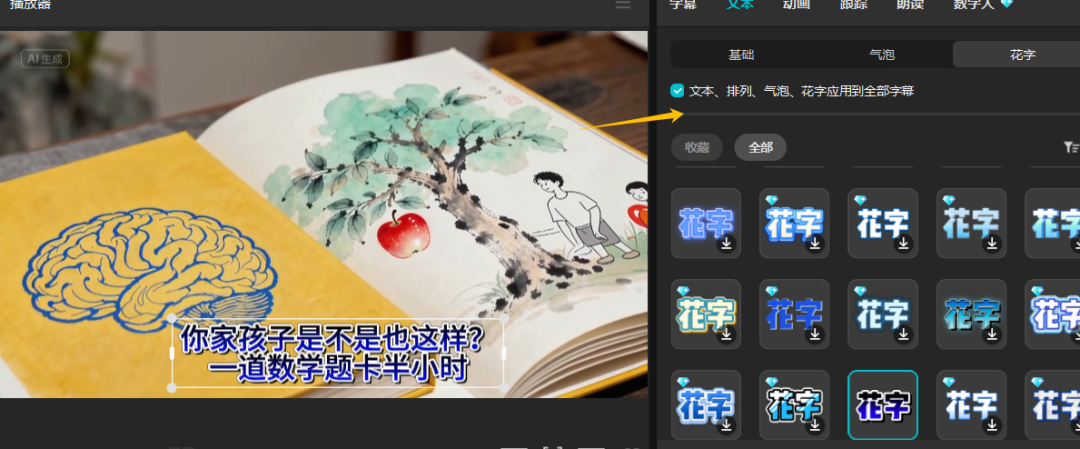 点击【添加文本】–【添加口播稿】