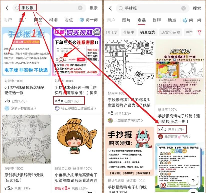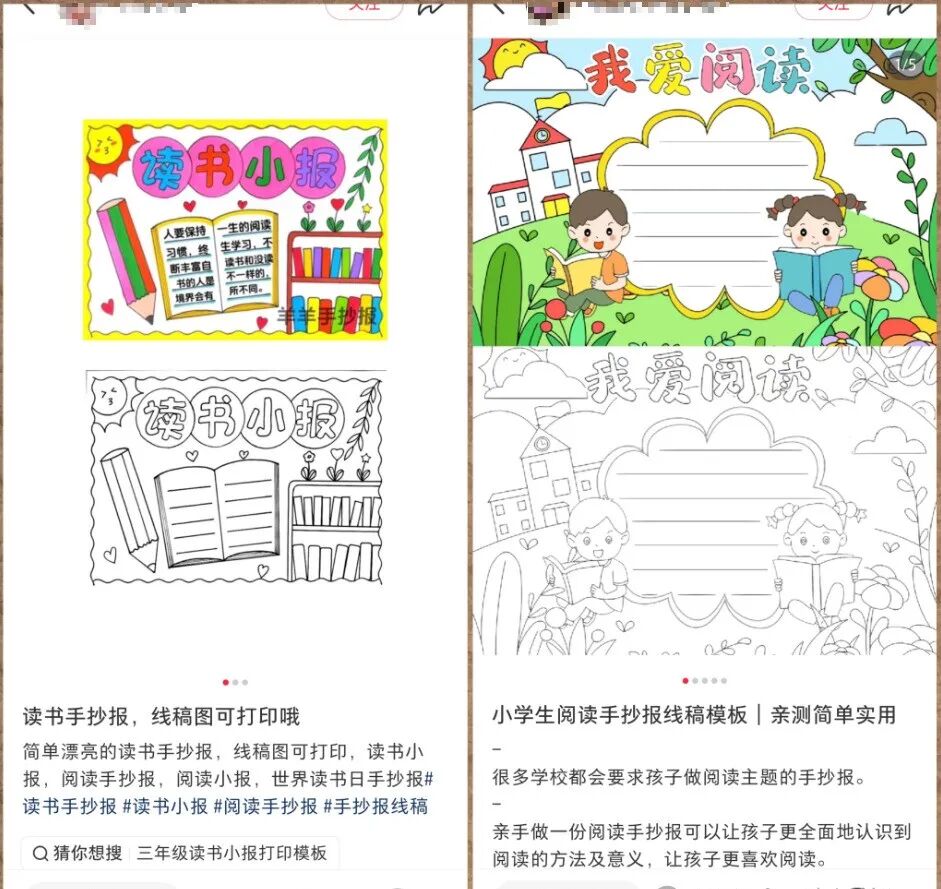 虽然有时候有参考,但是对于不会画画的家长来说,做一份的话需要几个小时,非常浪费时间这不,需求就来了 ,有需求就有市场于是就有很多人去小红书卖手抄报黑白线稿,打印出来就可以涂底色的稿子,如下图所示
