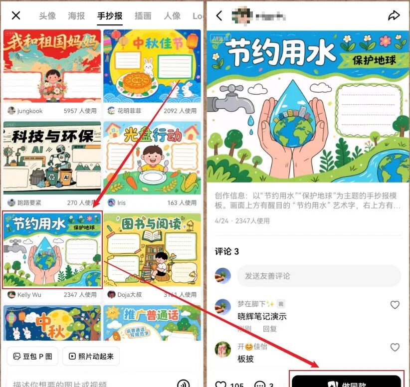 这个里面有很多的手抄报模版,各种类型的都有,你只需要选择自己喜欢的手抄报,然后点击去做同款就可以了