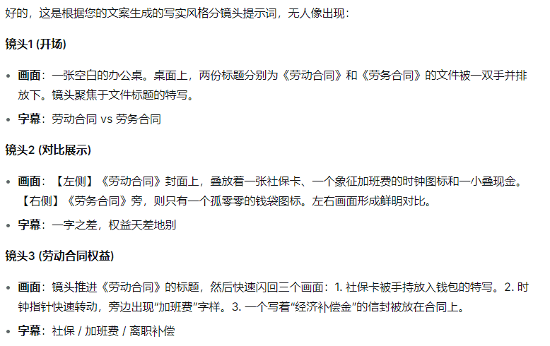 ②这是得到的分镜提示词。