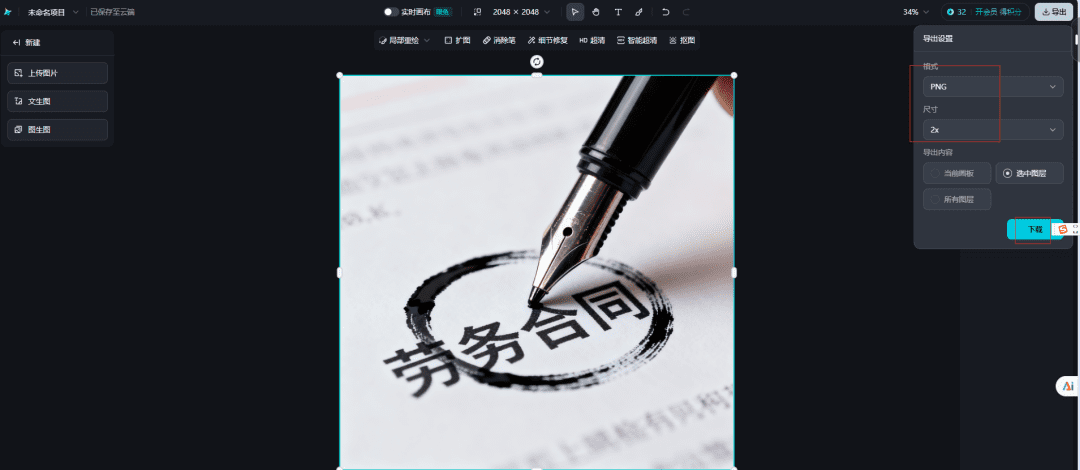 4.点击去画布编辑,能导出没有水印的图片。