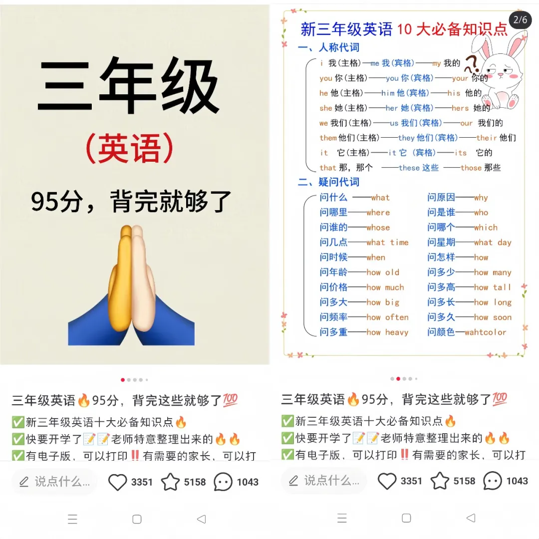 我在小红书上找的小学资料笔记,你们可以看看笔记下面的评论区,就知道有多少需求量。