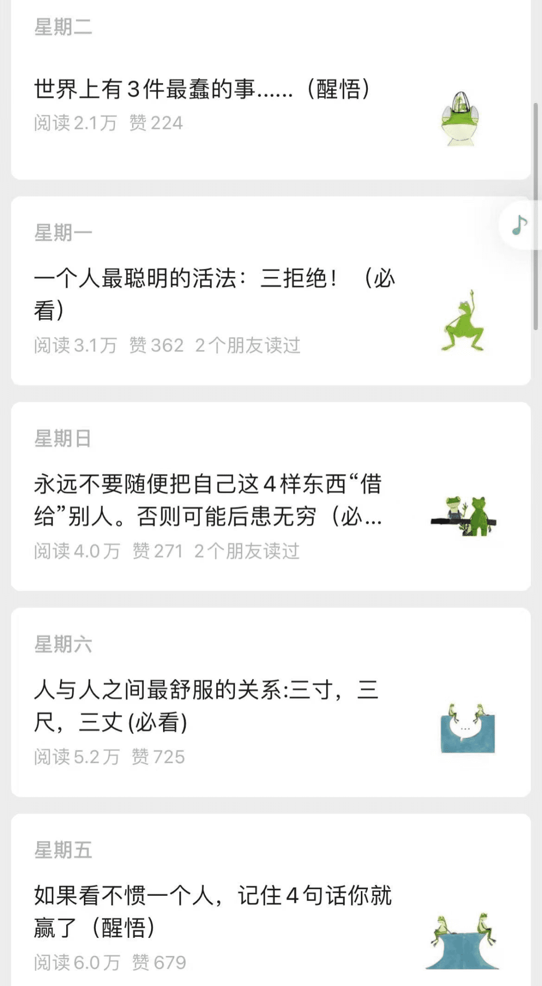 我说的就是那些“蛙蛙漫画”类的情绪治愈号。
