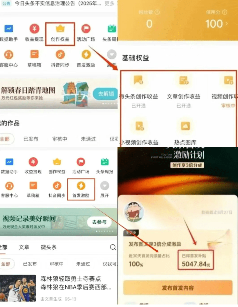 【核心功能】首发加成:这是收益翻倍的密码!文章声明“首发”,平台会给巨额流量补贴。