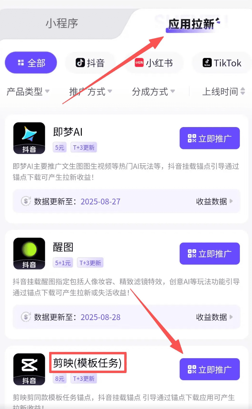 相信大家对APP拉新这种玩法已经不陌生了其实就和之前夸克网盘、迅雷网盘的推广逻辑一样只要新用户通过你分享的链接用到“剪映”的模板,你就能赚到一笔推广费。那为什么今天专门推荐这个呢?