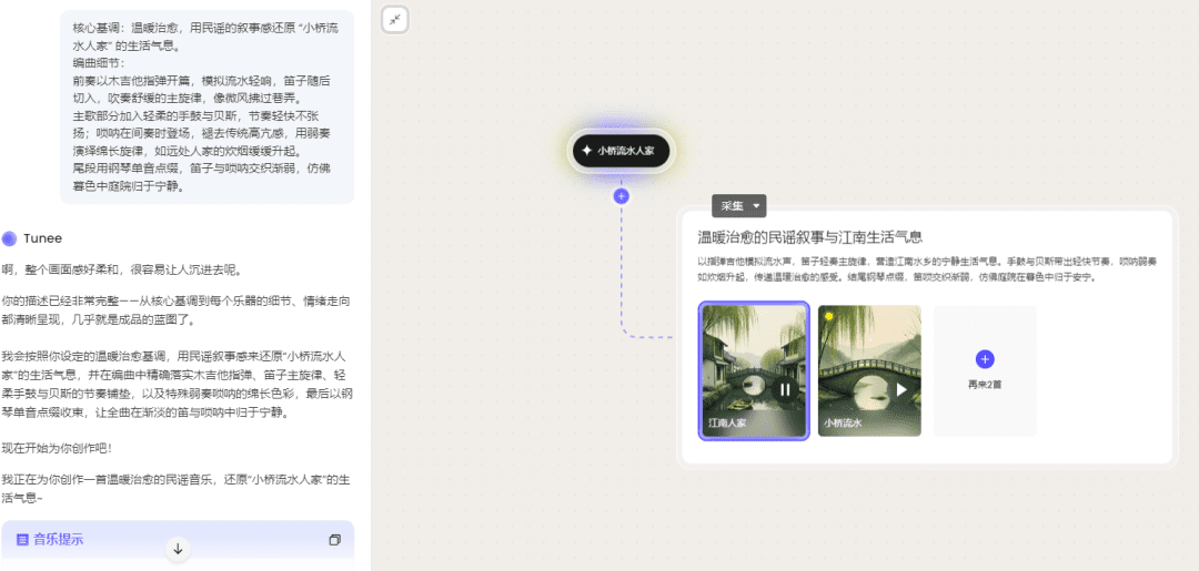 这是一个ai制作音乐的平台,看看一句话生成的音乐怎么样我只需要输入提示词:核心基调:温暖治愈,用民谣的叙事感还原 “小桥流水人家” 的生活气息。编曲细节:前奏以木吉他指弹开篇,模拟流水轻响,笛子随后切入,吹奏舒缓的主旋律,像微风拂过巷弄。