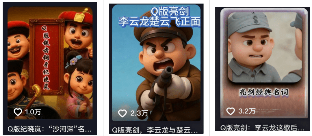 系统给我推送了Q版的亮剑,还别说,还是非常火的,这种Q版的经典影视剧的数据还是非常漂亮的。基本都是万赞以上。然后我就在全网查了一下,比如《亮剑》、《甄嬛传》、《铁齿铜牙纪晓岚》这些经典剧都被翻拍成Q版的了,先看看下面的数据,有没有打动你!
