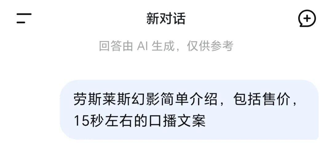 输入 “车型简单介绍 + 售价 + 15 秒时长”,