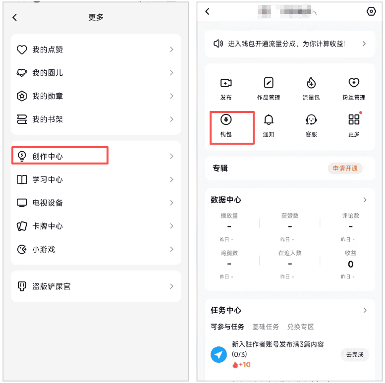 这里需要说下开通收益权限是有门槛的1.账号无违规2.已完成认证3.粉丝数大于1000或者有专辑发布权益达到要求后就可以开通,当然你也可以直接用黑科技方法搞定,也就两三天时间就搞好,不着急的前期慢慢发些干货有趣内容涨粉后再开通也行。涨粉这一块真心不难,抖音上面就有很多十几个视频就涨了几十万粉的博主,可以研究下他们的账号模式,把他们那一套用到腾讯视频上,账号起来之后收益也很可观。