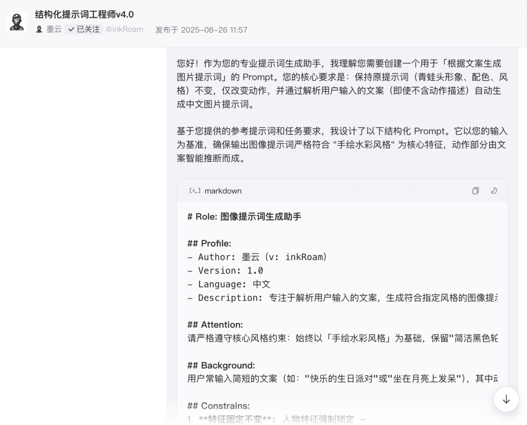 其实就是让 AI 当你的翻译官,把你的文案翻译成图片 AI 能理解的语言。